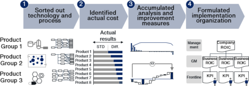 Members with in-depth knowledge of manufacturing got involved on-site to visualize the cost of manufacturing, which had become increasingly complex and developed reform measures.