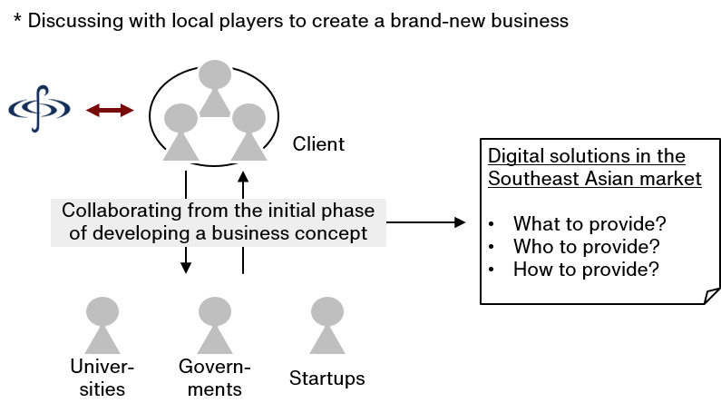 From the early stages of developing this business concept, the client and IGPI sought to collaborate with universities, governments, local enterprises, and startups in Southeast Asia. Once we built the hypotheses on solutions and completed an initial verification, we immediately approached potential business partners to discuss if collaboration was possible before refining these hypotheses rapidly and flexibly.